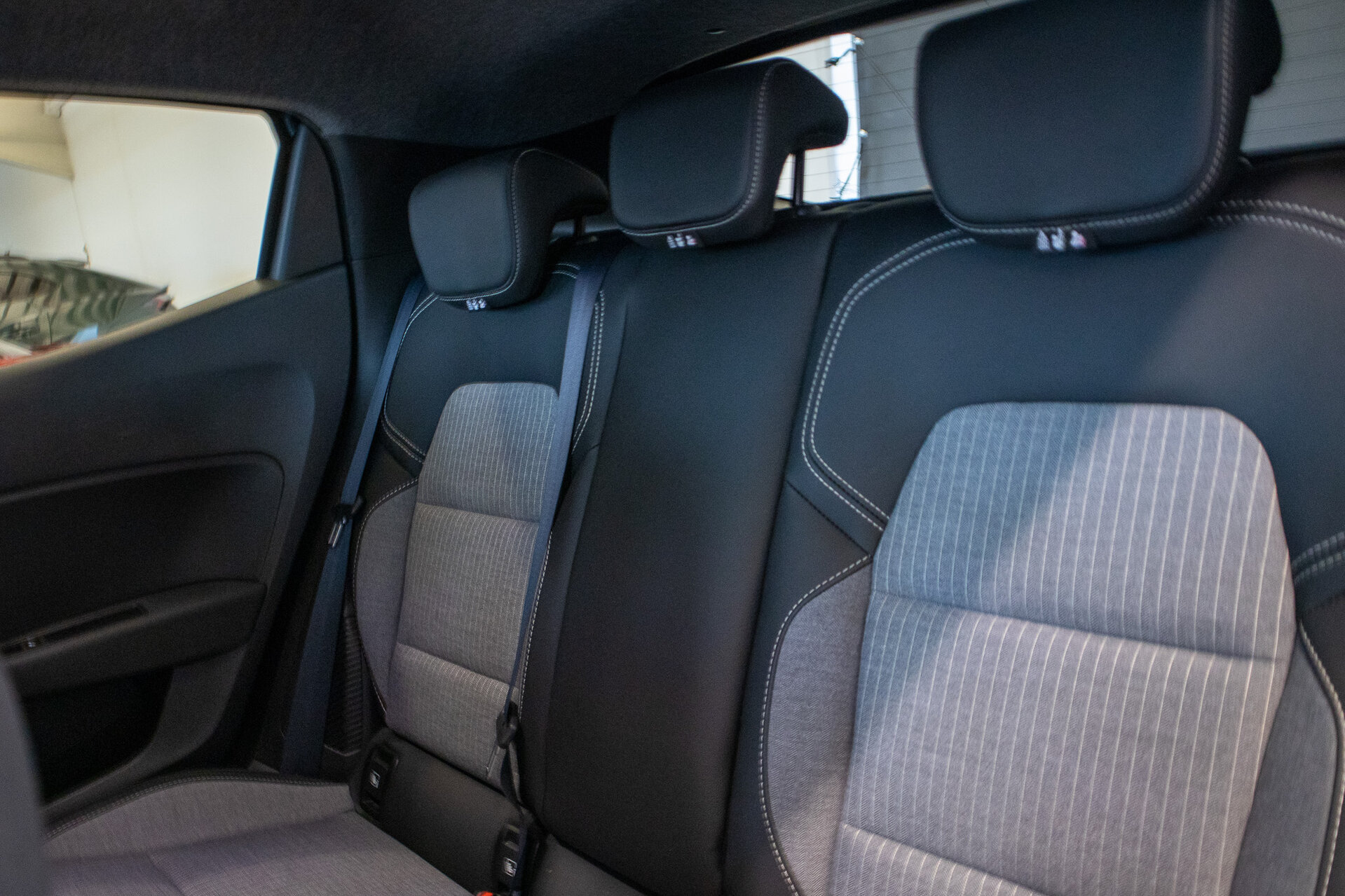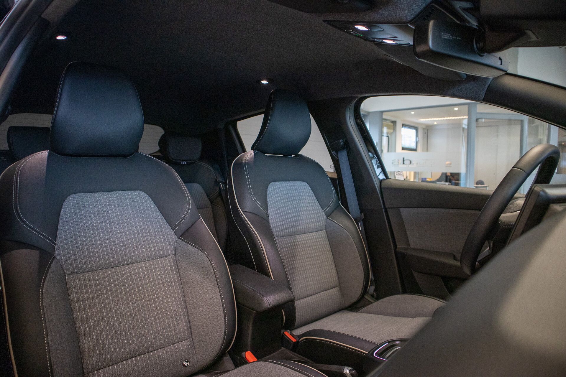 Zwart interieur met stof / leder combinatie